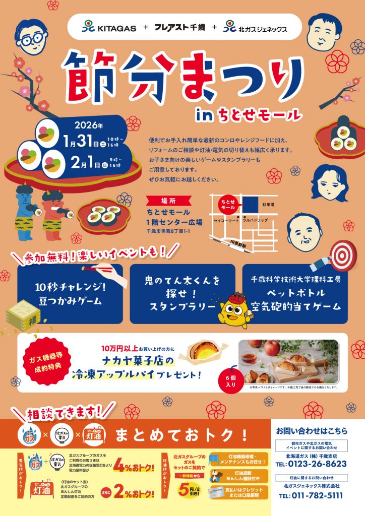 このたび千歳・恵庭地区の北ガスグループ共同で”節分まつり”を開催いたします。