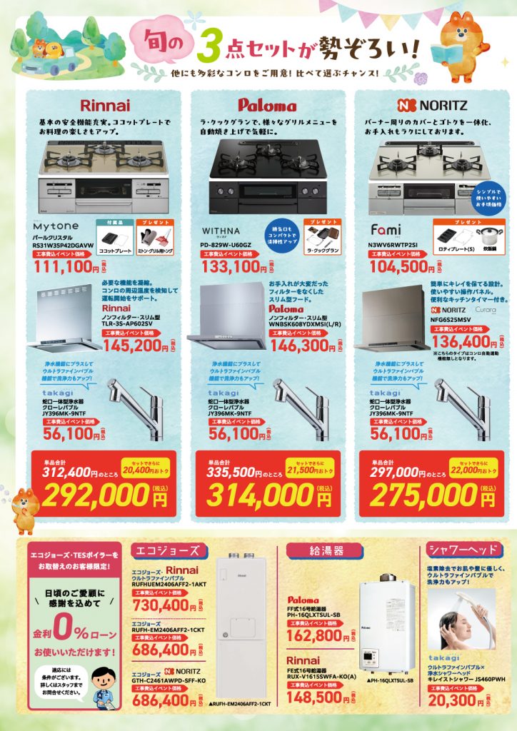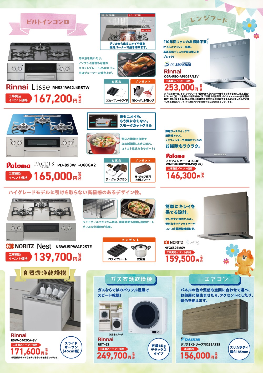 ガスコンロやレンジフード、食器洗浄機、衣類乾燥機、さらに住まいを快適に